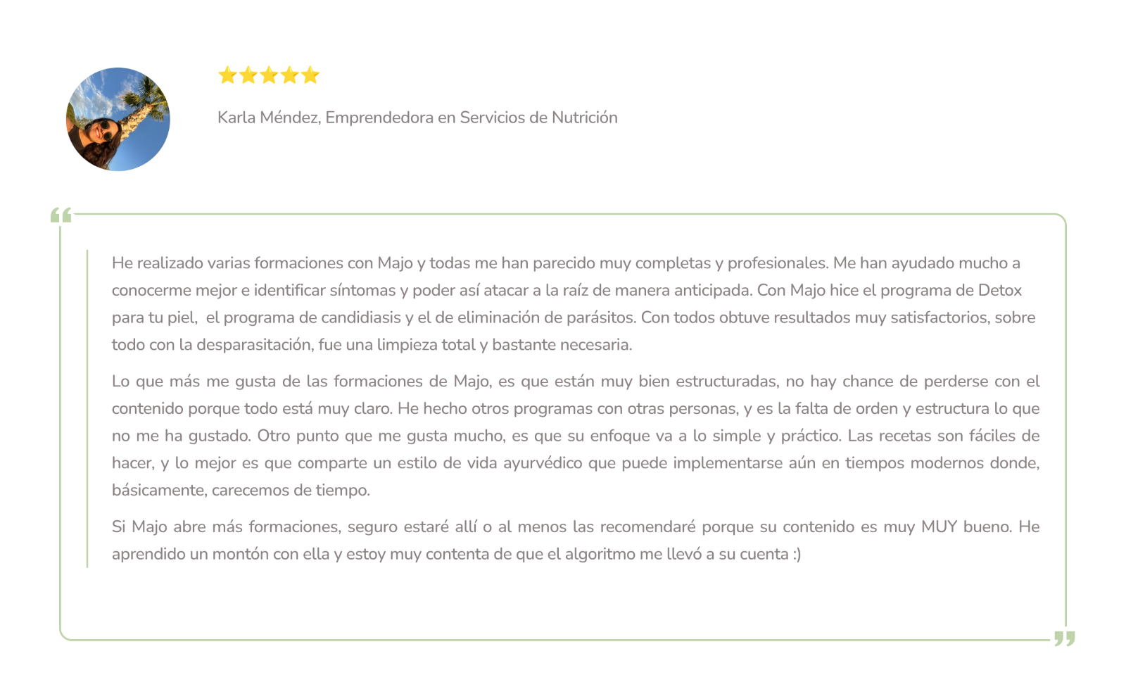Diseñados para acompañarte a encontrar el origen real de tus desequilibrios. Trabajo con un enfoque que une ciencia, Ayurveda y nutrición funcional, para que puedas entender qué está pasando en tu cuerpo, por qué, y cómo volver a tu eje con herramientas concretas, simples y sostenibles.